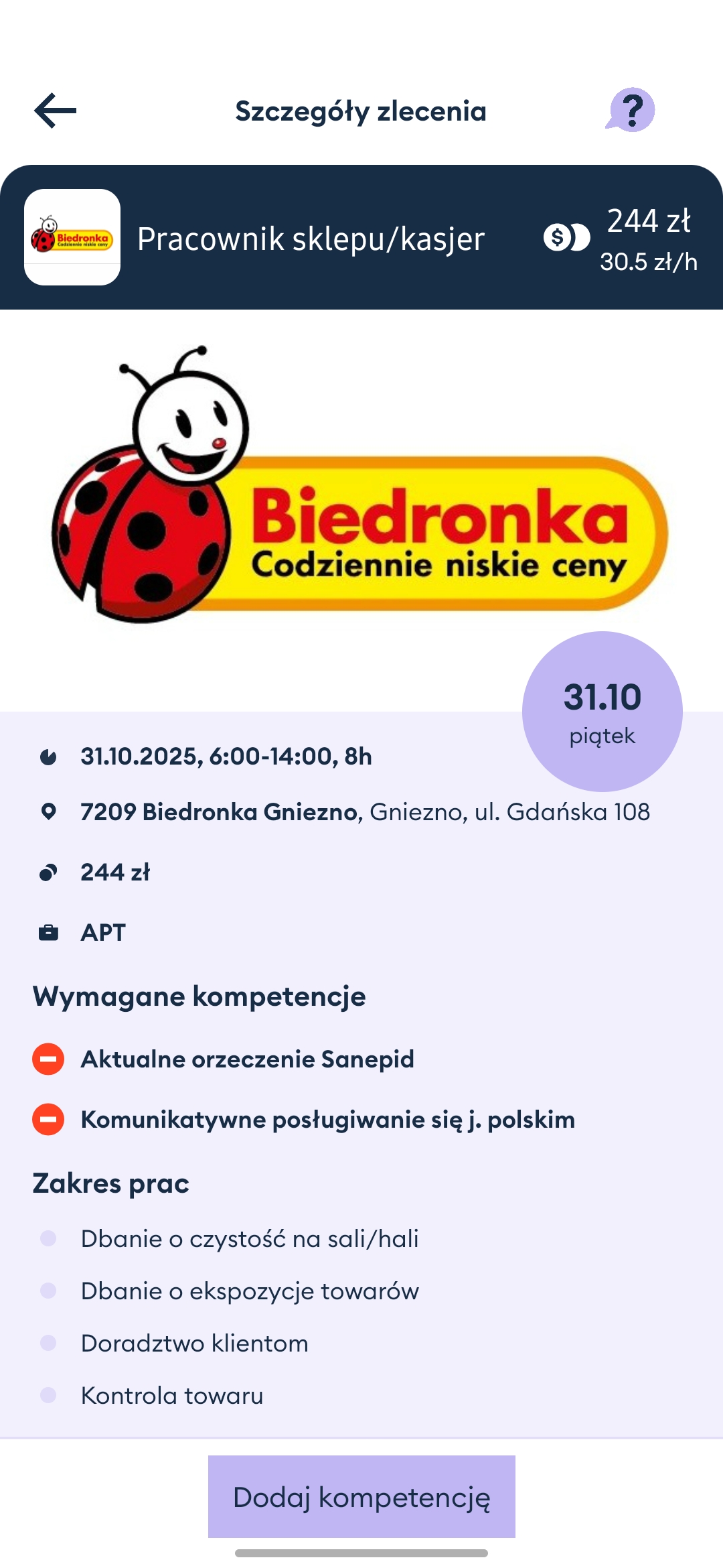 Agencja pracy posiada własną pełnoprawną aplikację mobilną, jest dosłownie rozwiązaniem pokroju Uber ale dla tymczasowej pracy w dowolnie wybranym czasie na konkretne zadania. Oferty filtrujemy wg preferencji zawodu, odległości i terminu.
