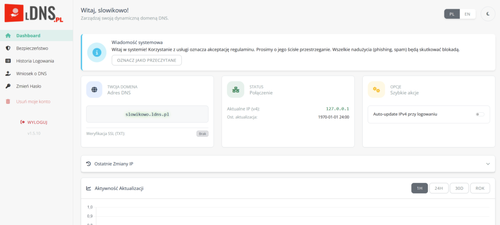 Chciałem się pochwalić projektem, który dłubię po godzinach. Stworzyłem własny, w pełni darmowy serwis Dynamic DNS – LDNS.pl.